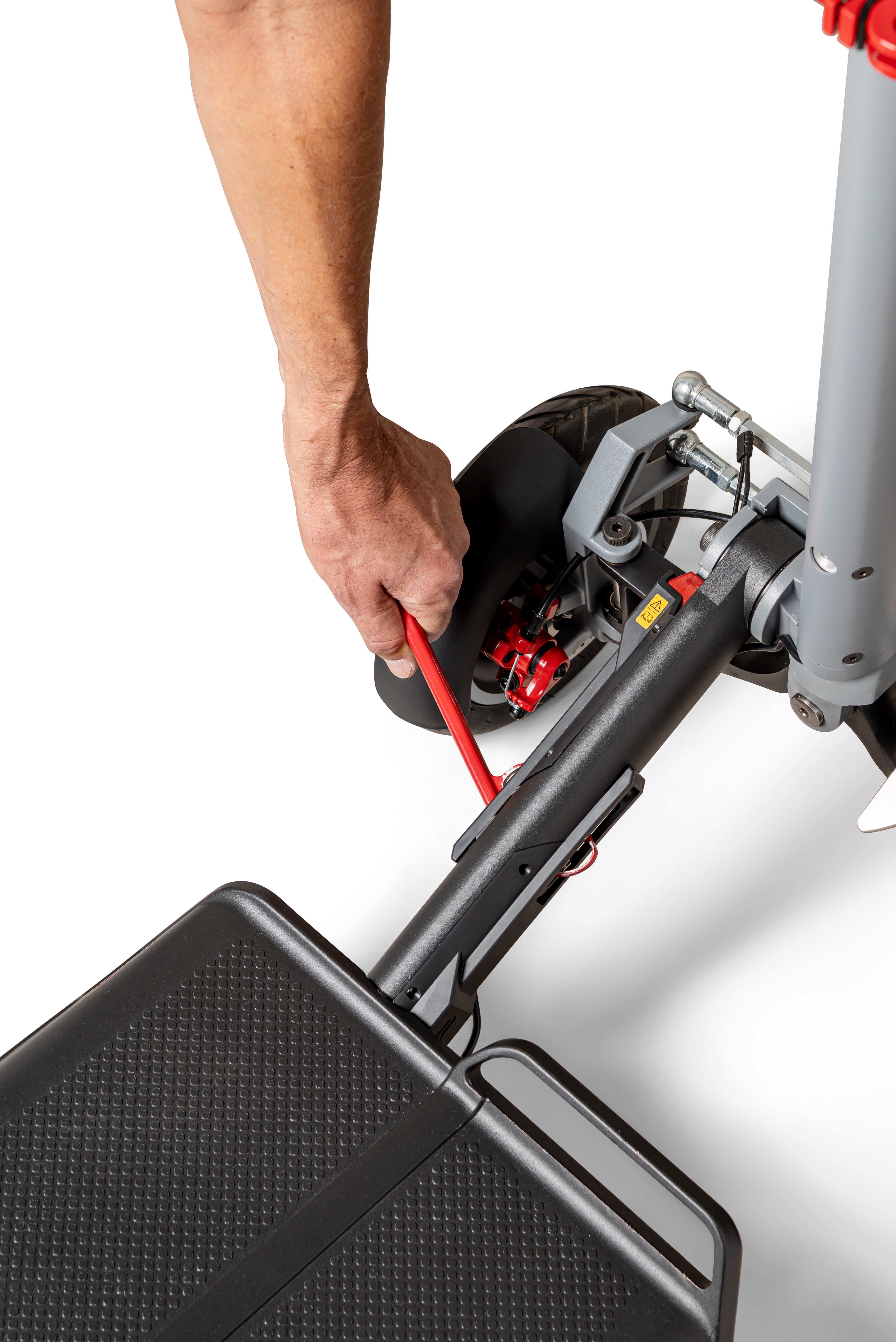 The folding action was designed to be operable in a minimal number of steps, without the need for tools or excessive force, allowing quick and effortless switching between riding and trolley modes